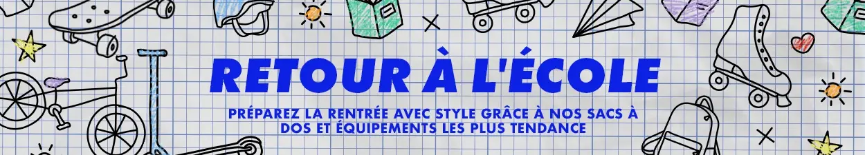 Trouvez les articles indispensables pour la rentrée chez SkatePro : vêtements, sacs à dos, skateboards, trottinettes, vélos BMX, et plus encore !